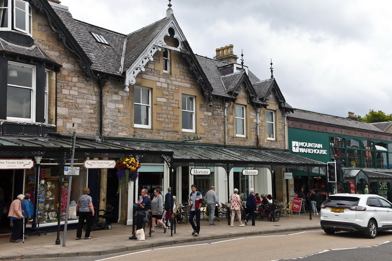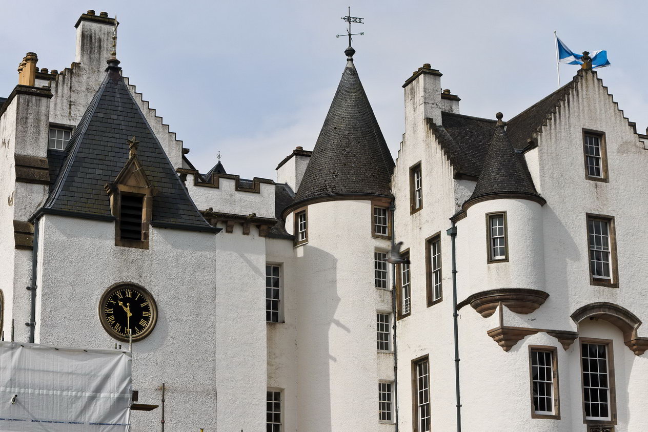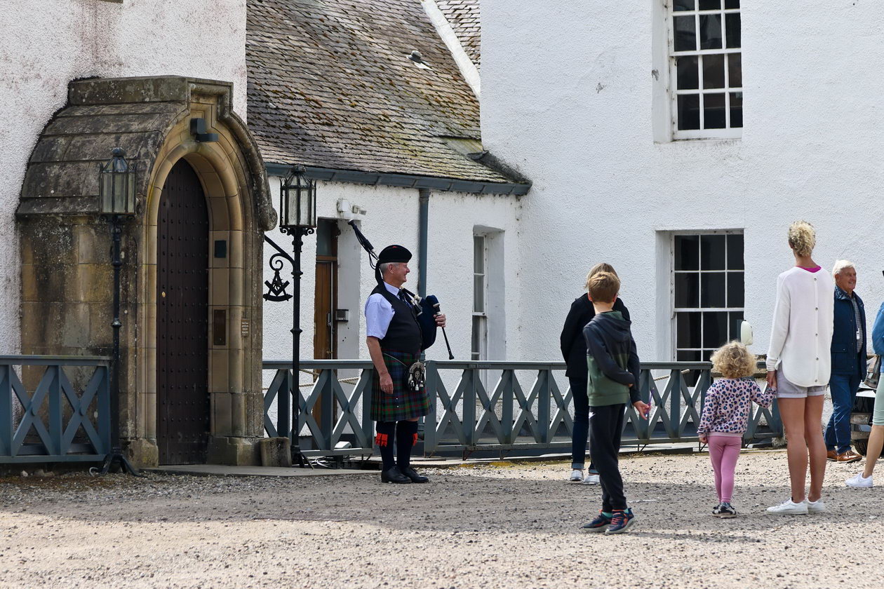 Bei PitlochryVon Pilochry ging es dann mit dem Bus zmu Blair Castle. Keineswegs war das nicht ein ehemalige britische Premierminister, der hier residierte. Es gehört viel mehr dem Duke of Athol. Und der hat es seit vielen Generationen immer weiter vererbt. Erbschaftssteuern gibt es für diesen Personenkreis nicht. Der derzeitige Duke ist ein seltener Gast in diesem Anwesen.. Er lebt stattdessen in Südafrika und geht dort seinen Geschäften nach. Deshalb gab er uns die Gelegenheit, sein schottisches Heim zu besichtigen. Man entrichtet einen nicht zu spärlichen Eintritt, damit kann der Duke sein Haus in Ordnung halten. Dafür wird wahrscheinlich ein größeres Sümmchen monatlich erforderlich sein.