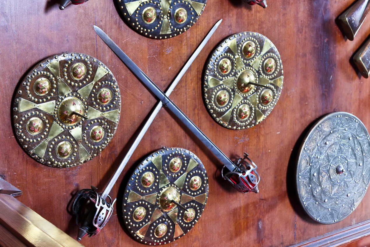 Die Duchess war wohl der Meinung, dass Waffen niht in das Haus gehören. So kamen sie im Treppenhaus an die Wand