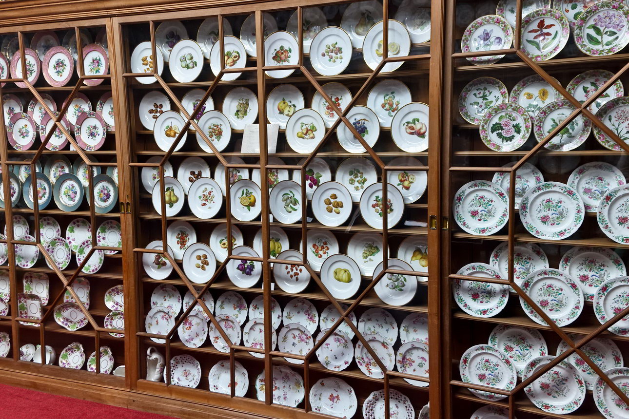 Eine kleine Auswahl aus dem Porzellan des Duke. Jeder Teller ist handgemalt, meistens weisen sie untereinander trotz gleichem Hauptmotiv kleine Unterschiede auf.