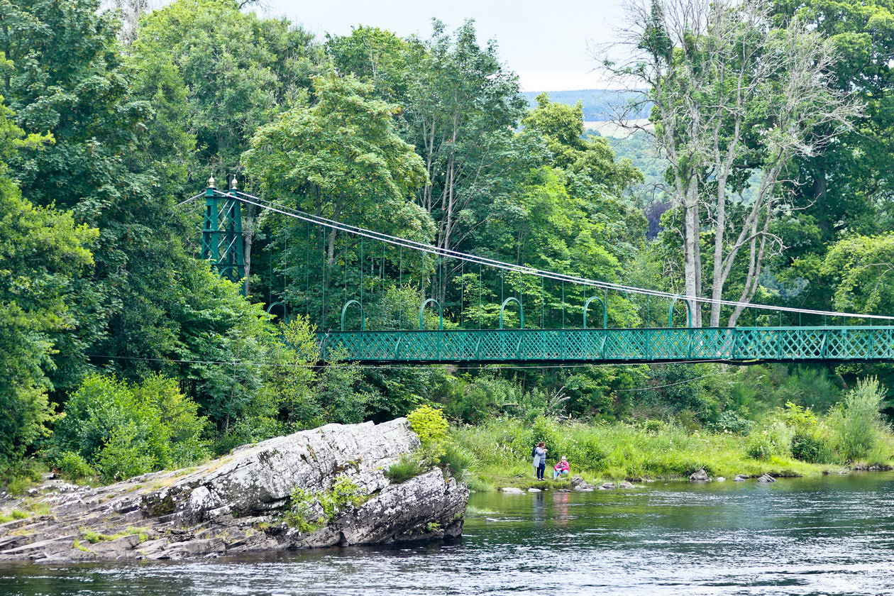 Eine abenteuerliche Hängebrücke ermöglichte die Überquerung des Flusses