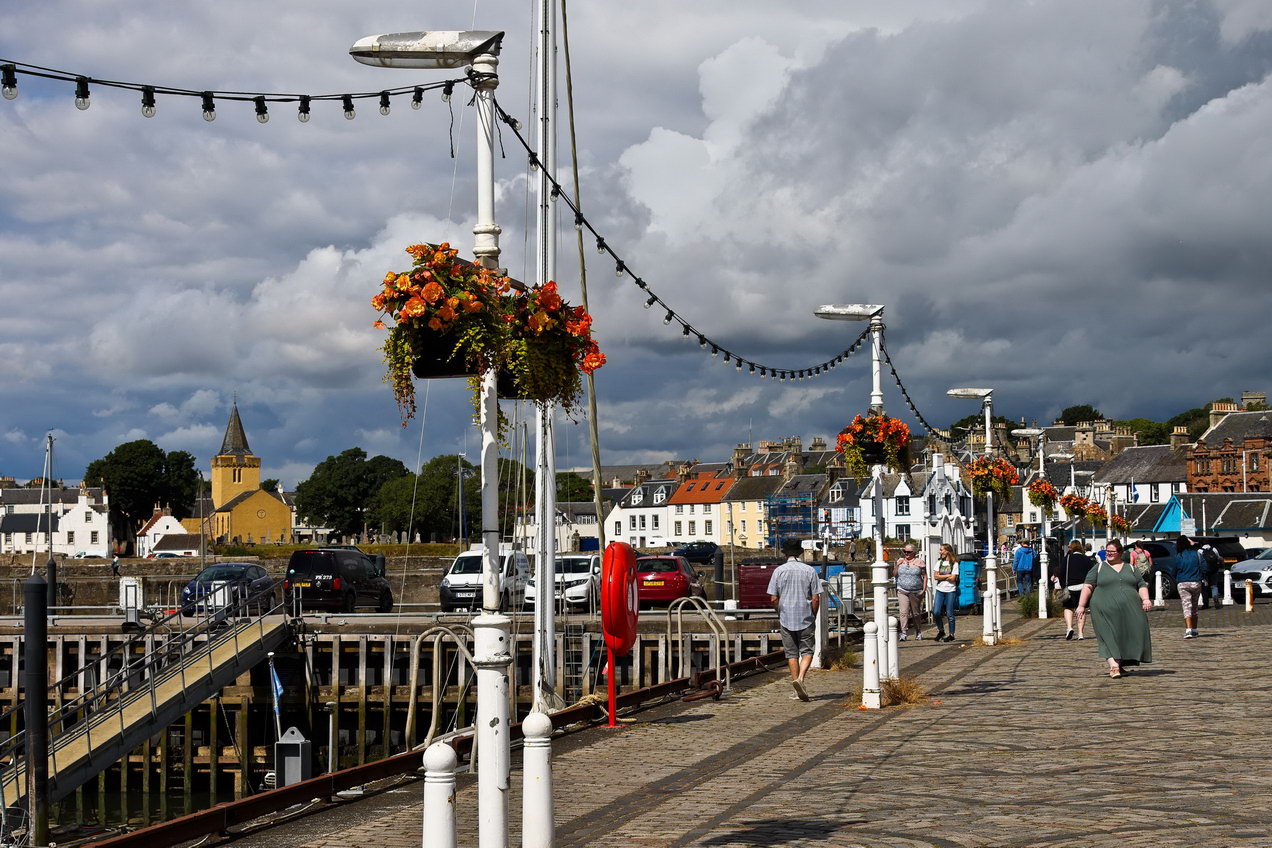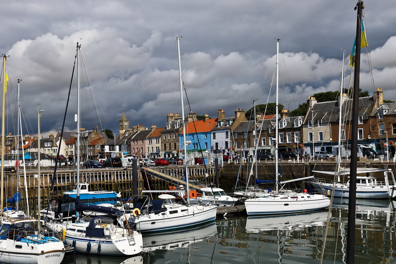 Nach PilochryNach drei Tagen in Edinburgh ziehen wir weiter. Unser Ziel ist Pitlochry, wo wir zwei weitere Tage verbrachten. In einem kleinen Küstenort machten wir unsere Mittagspause. Etwas chaotisch und unaufgeräumt: er Sportboothafen. Der Himmel drohte mit einem Wolkenbruch, es blieb allerdings trocken.