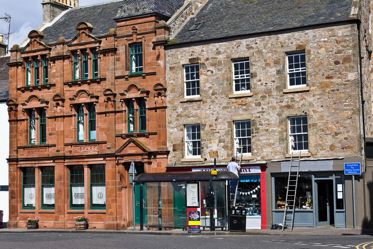 Ein hübsches kleines Örtchen. Fast überall gibt es einen herrlichen Blumenschmuck. Das war's auch schon in Edinburgh aufgefallen. Allerdings war in Edinburgh häufig eine besondere Form von Pflanzen eingesetzt worden: Plastikblumen!. An den meisten anderen Stellen waen Sie jedoch echt.