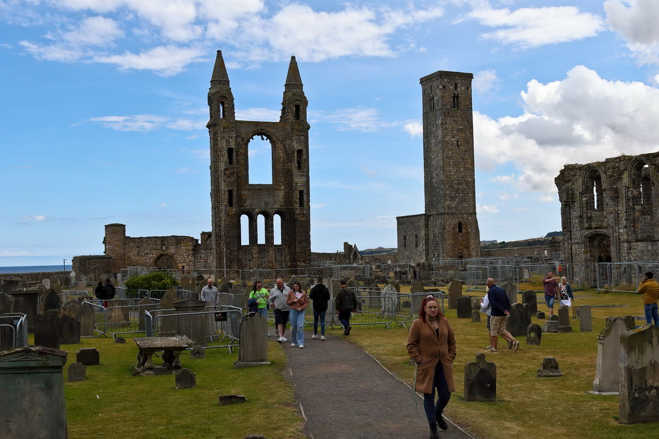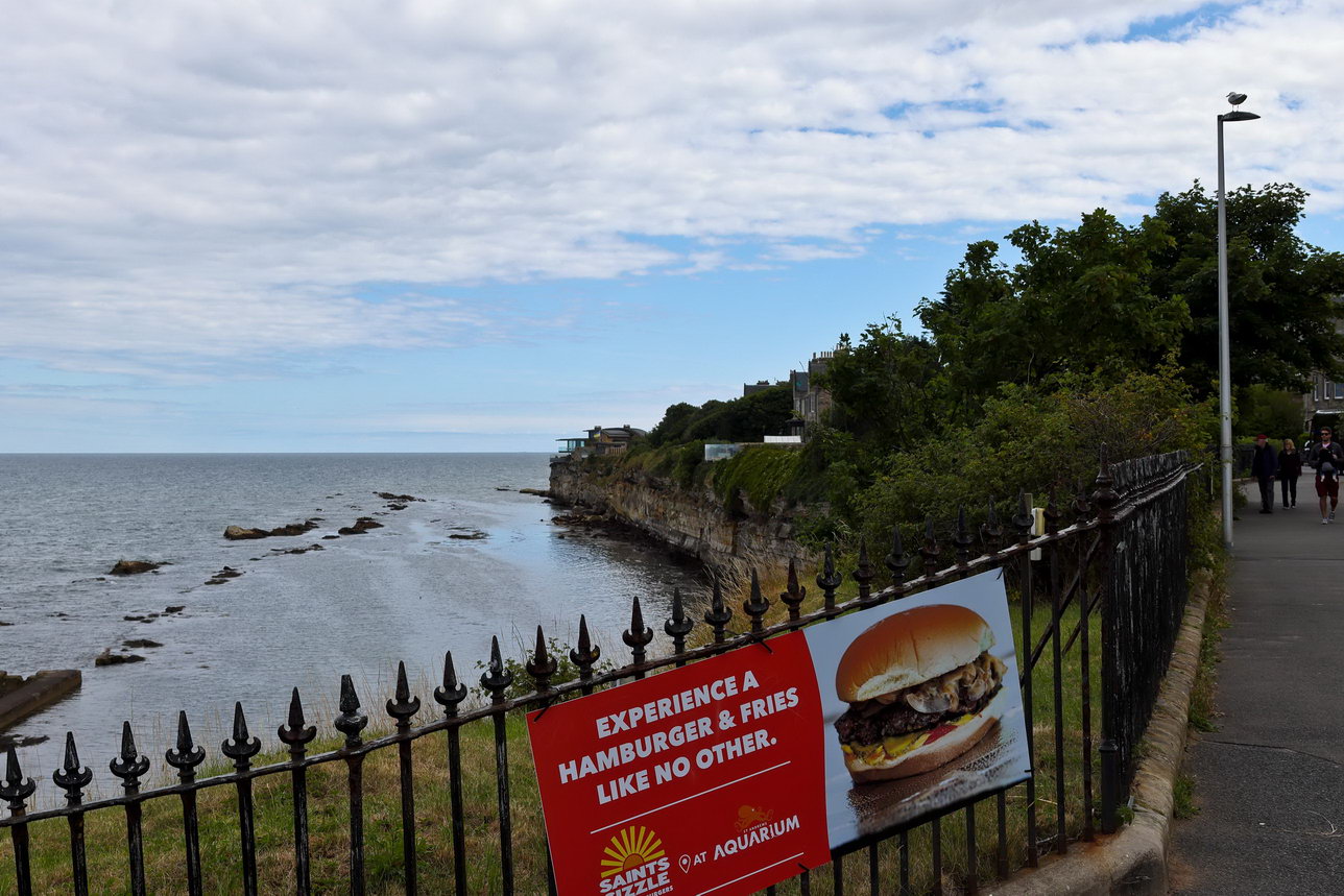 Oft vertreten sind kleine Cafés oder Restaurants, in denen man eine Häppchen bekommen kann. Das sind keine Spitzenprodukte der Kochkultur, als Zwischenimbiss in der Mittagszeit allerdings immer ausreichend. Weiter geht es, nächstes Ziel ist St. Andrews. Hier heißt es, ehrfurchtsvoll den nicht vorhandenen Hut abnehmen und eventuell sogar die Schuhe auszuziehen, wenn es auf den heiligen Rasen geht.