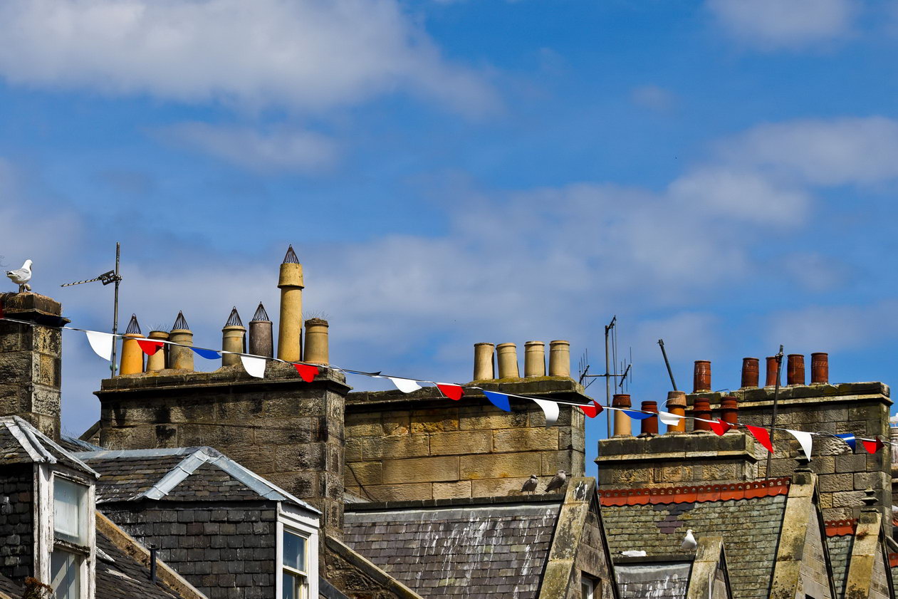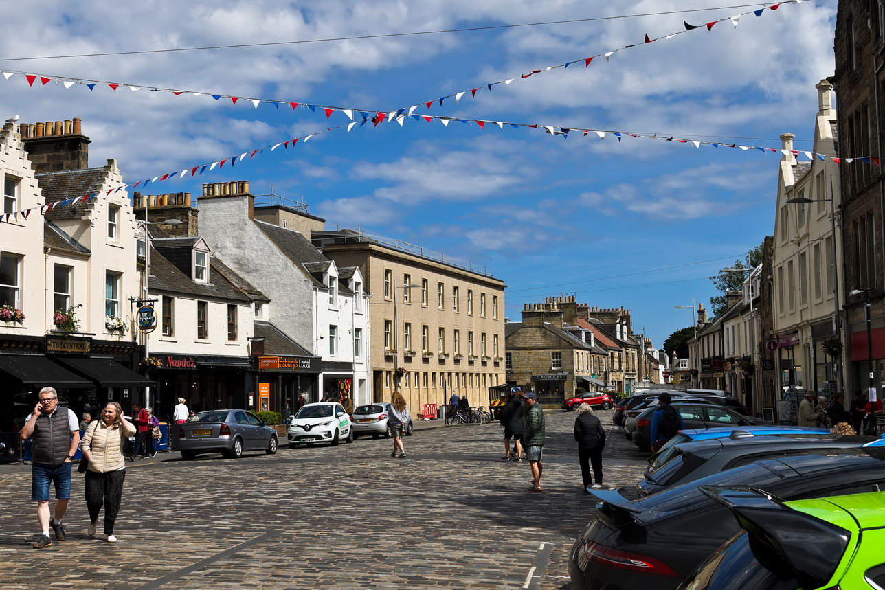 Zunächst geht es über den Meeresarm Firth of Forth auf die Halbinsel Fife. (Nein, weiter geht es in der Zahlenwelt nicht, es gibt kein Six.) Zunächst müssen wir die Eisenbahnbrücke bewundern, die mit einer Länge von 2,5 km das Wasser überspannt. Man ist immer noch sehr stolz, das Vorgängermodell ist im Sturm eingestürzt, was viele Todesopfer forderte.