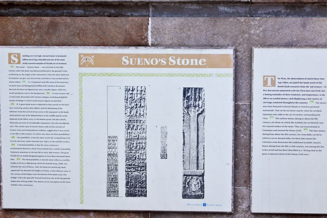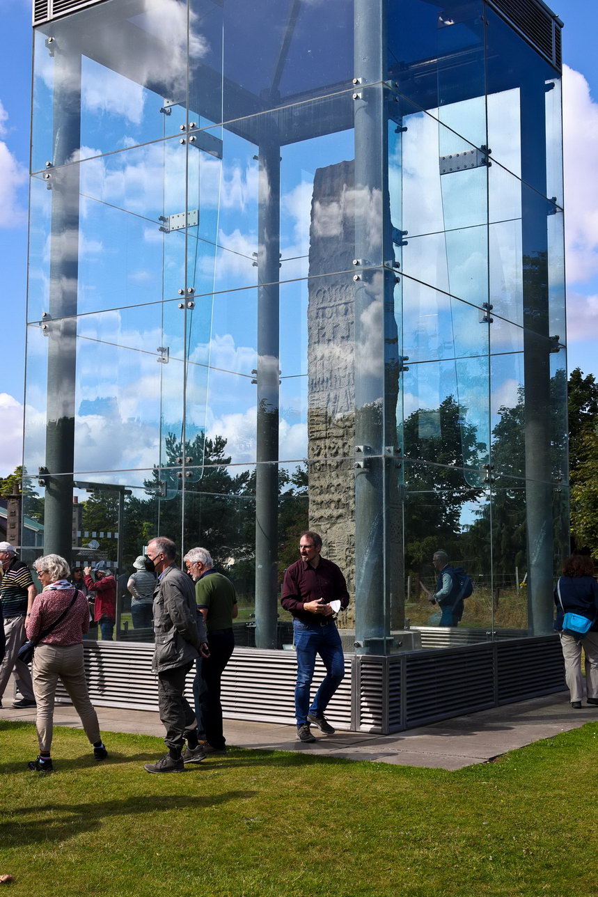 Es ging weiter zur nächsten Station nach Gairloch. Der erste Zwischenstopp erfolgte dann bei Sueno’s Stone. Das ist ein Obelisk, bedeckt mit scheinbar unendlich vielen Symbolen und Piktogrammen. Datiert wird der etwa auf das sechste Jahrhundert, wirklich viel weiß man nicht darüber.