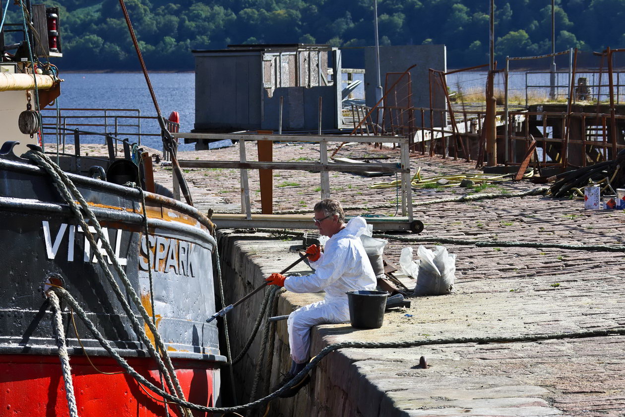 Bei Hochwasser wird der Rest des Boots angestrichen.