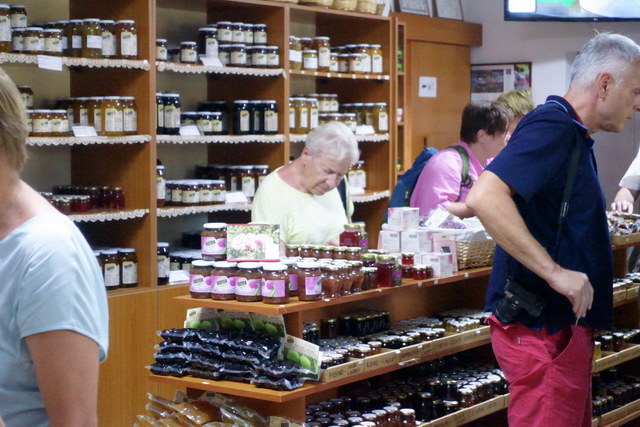 Es war noch früh am Tag und so zogen wir einen Besuch bei Niki vor. Die Dame hat einen kleinen Betrieb, in dem sie so alles was dort wächst, zum Beispiel Kirschen, Walnüsse, Kürbisse, in einer Zuckerlösung einlegt. Das Ergebnis wwird später als Süßigkeit verkauft. Man muss schon dafür schwärmen, uns war das viel zu süß.