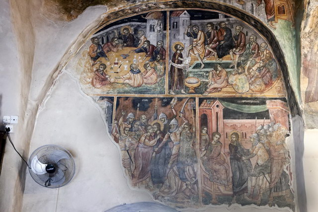 PaphosVon Paphos aus ging es zur Kirche in Yeroskiou. Sie hat einige mehr oder weniger gut erhaltene Fresken. Eindringendes Wasser hat auch hier stellenweise den Putz abgelöst und damit Bildteile vernichtet.