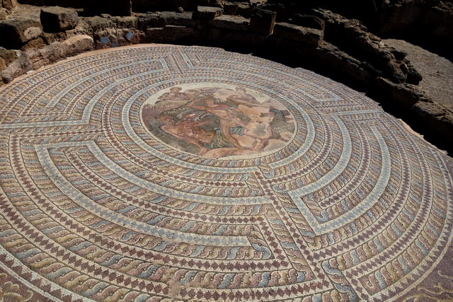 In den Ausgrabungen: Ein rundes Mosaik.