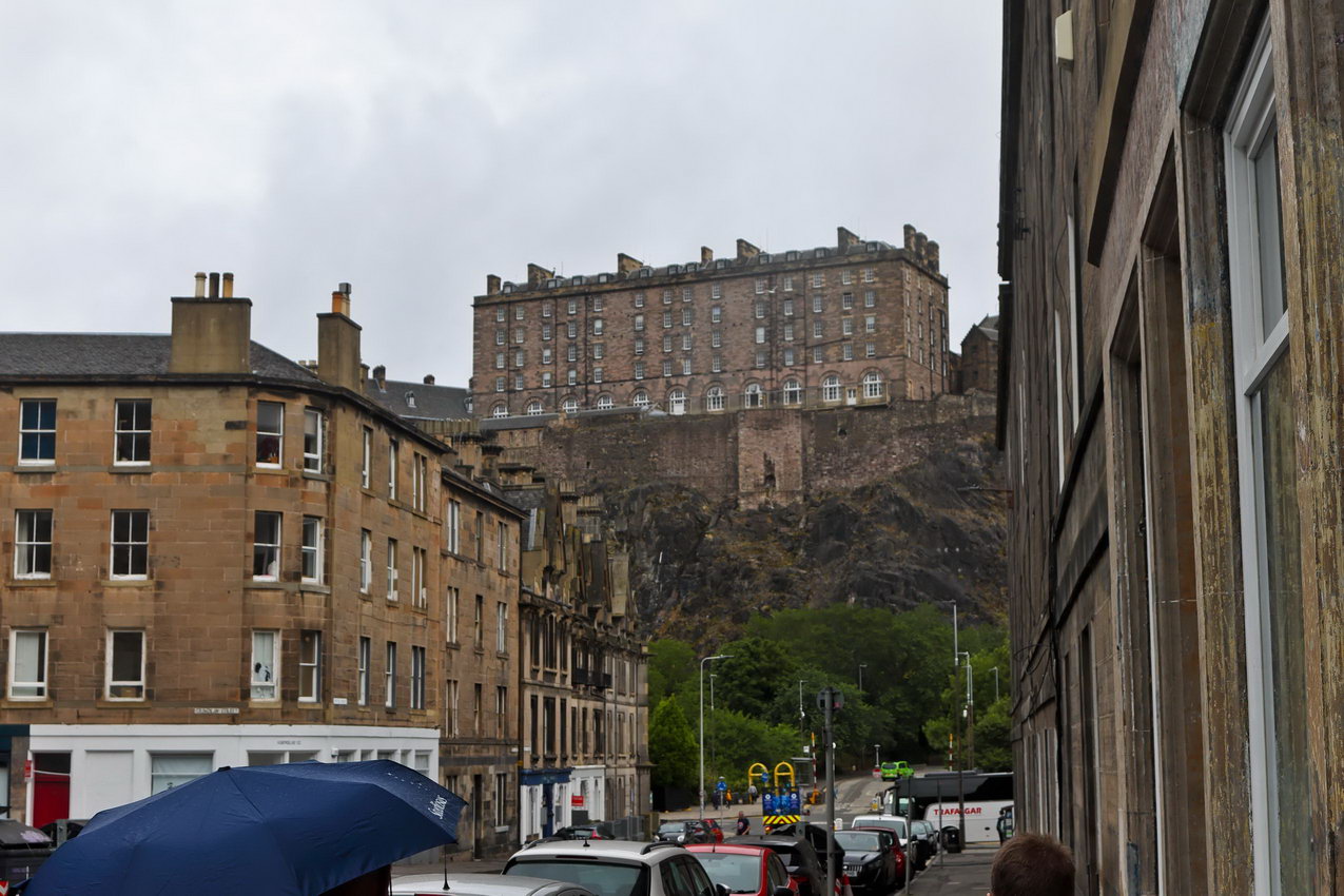 Das schottische Wetter ist sehr verlässlich. Falls es jemandem nicht passt, muss man nur 10 Minuten warten, dann ist es anders. Am zweiten Tag war jedenfalls erst einmal Nieselregen angesagt. Das hinderte uns nicht, dem Schloss einen Besuch abzustatten. Das ist alles gut organisiert, man braucht quasi eine Reservierung und kann dann in einem bestimmten Zeitfenster kommen. Das hat den Vorteil, dass nicht ganz so voll ist. Das Schloss galt lange Zeit als uneinnehmbar, da es auf einem Felsen steht. Naja irgendwann hat sich dann doch jemand den Zutritt über die Felsen geschaffen. Dort oben gibt es reichlich viel alte Steine zu sehen, Schottland hat sehr viel Geschichte. Aber man erhält auch einen guten Überblick über die Stadt, die einem von hier aus gesehen zu Füßen legt