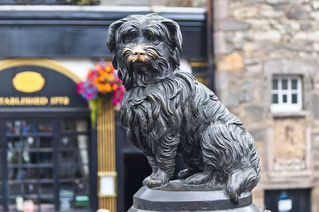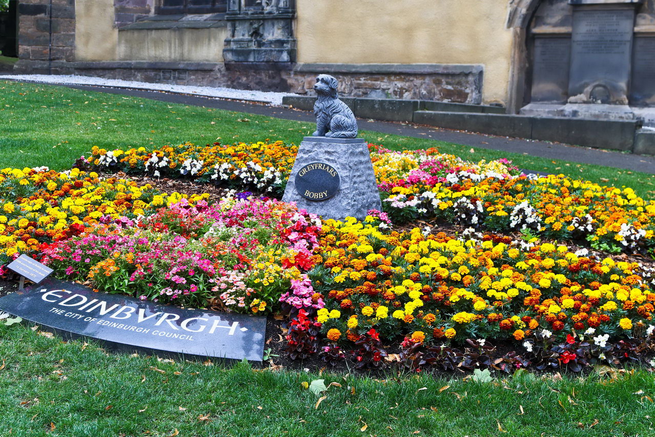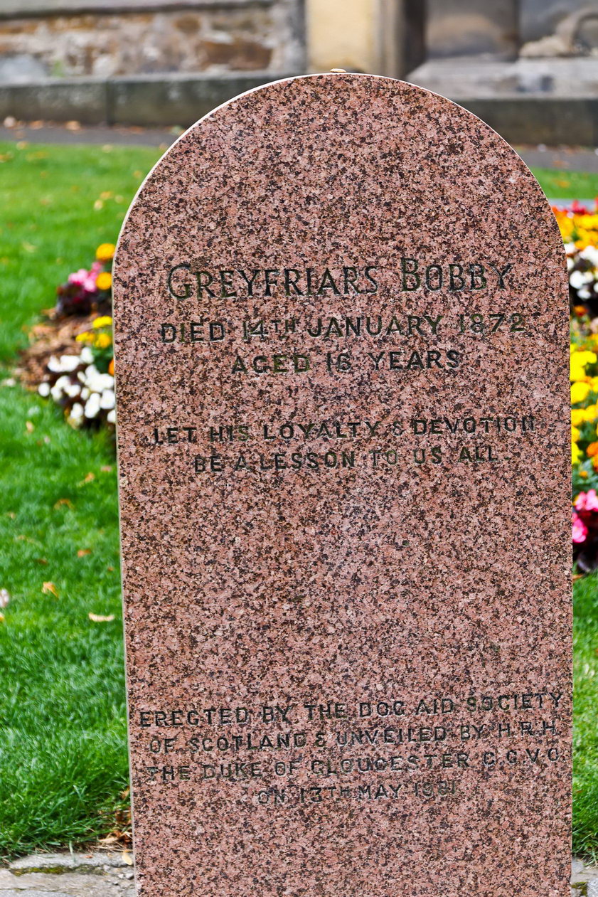 Der gehört auch zu Edingburgh. Der kleine Hund des Polizisten Greyfriar. Es soll ihn ständig mit auf die Streife genommen haben, die beiden müssen zusammengehört haben. Nun ist sein Herrchen leider nicht sehr alt geworden, der Polizist starb und wurde beerdigt. Nun heißt es, der Hund habe ständig an seinem Grab gesessen und es nur verlassen, um einmal etwas zu fressen. Das soll er über einen Zeitraum von etwa 14 Jahren durchgehalten haben. Dann ist auch der Hund gestorben. Man hat ihn dann in der Nähe seines Zeichens beerdigt, mit etwas Abstand, denn so ein nun durfte nicht auf geweihtes Land.
