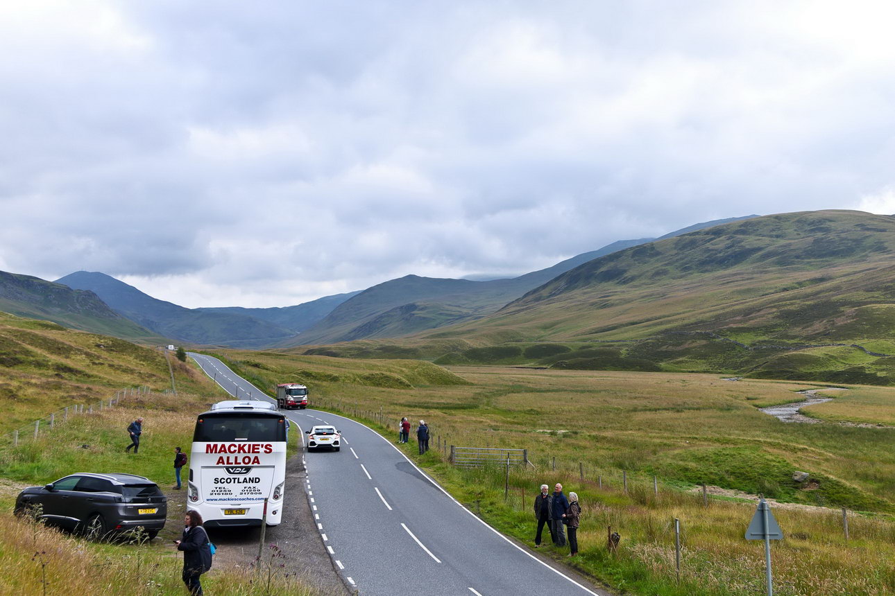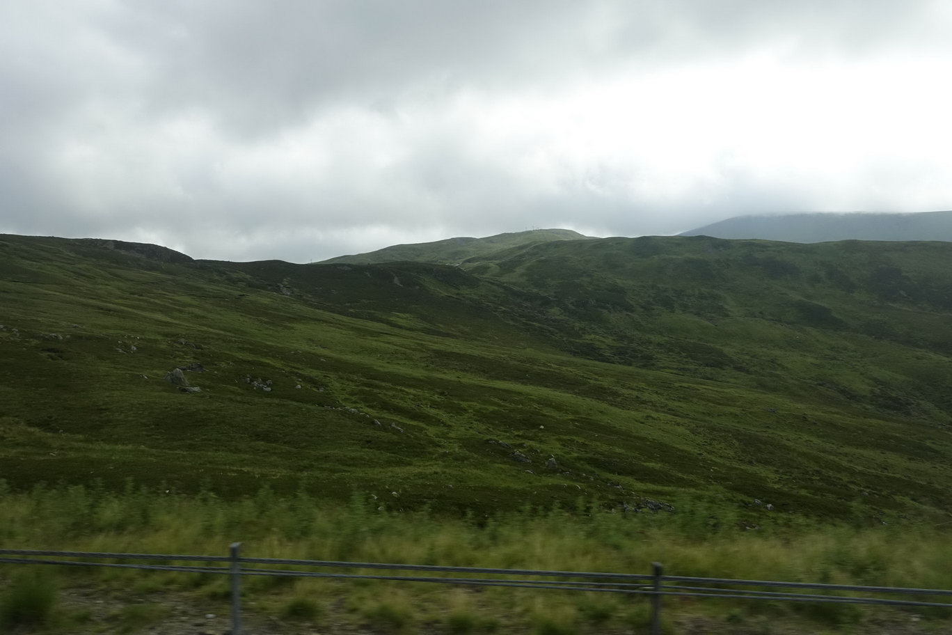 Nächstes Ziel war Aberdeen. Es ging durch die Highlands. Das ist grün, Und sonst gar nichts. Hier leben mancherorts nicht einmal vier Menschen auf 1 km² das Wetter war landestypisch: Graue Wolken hingen dicht über den grünen Bergen