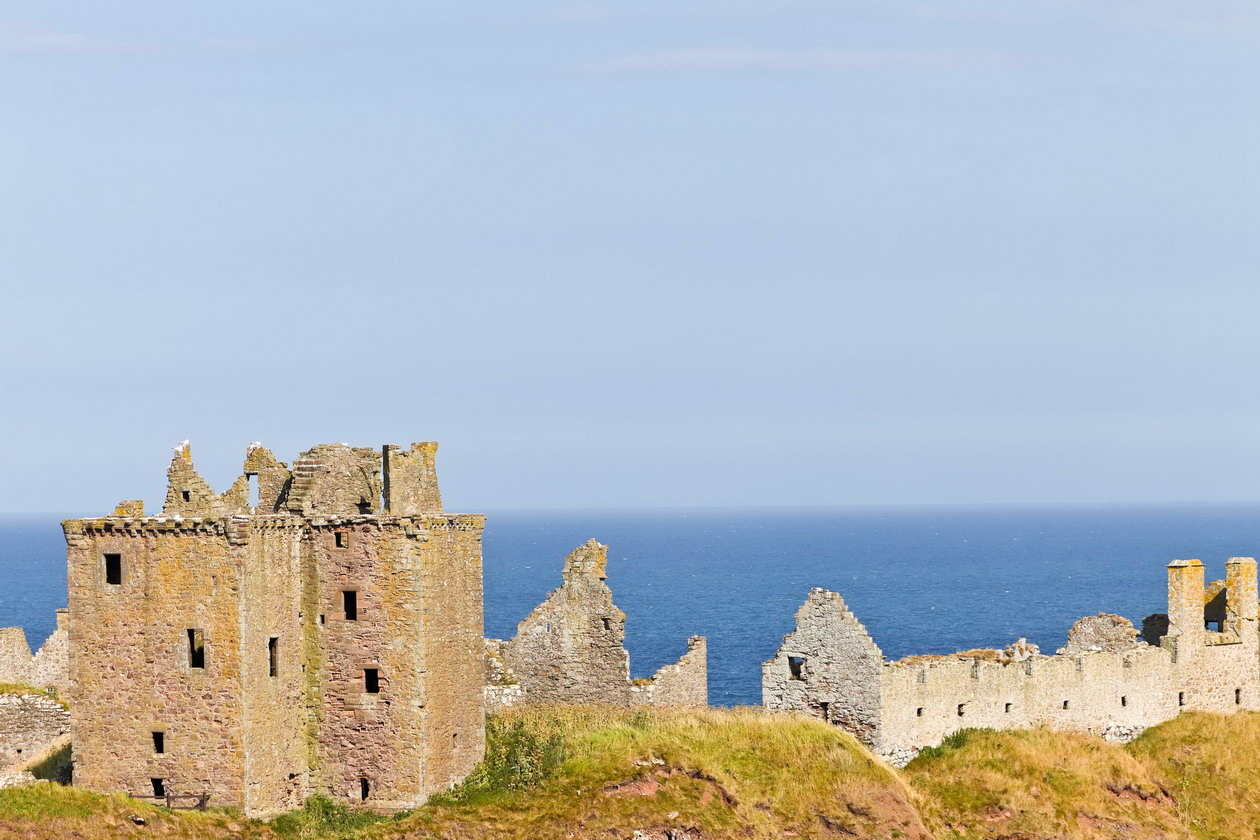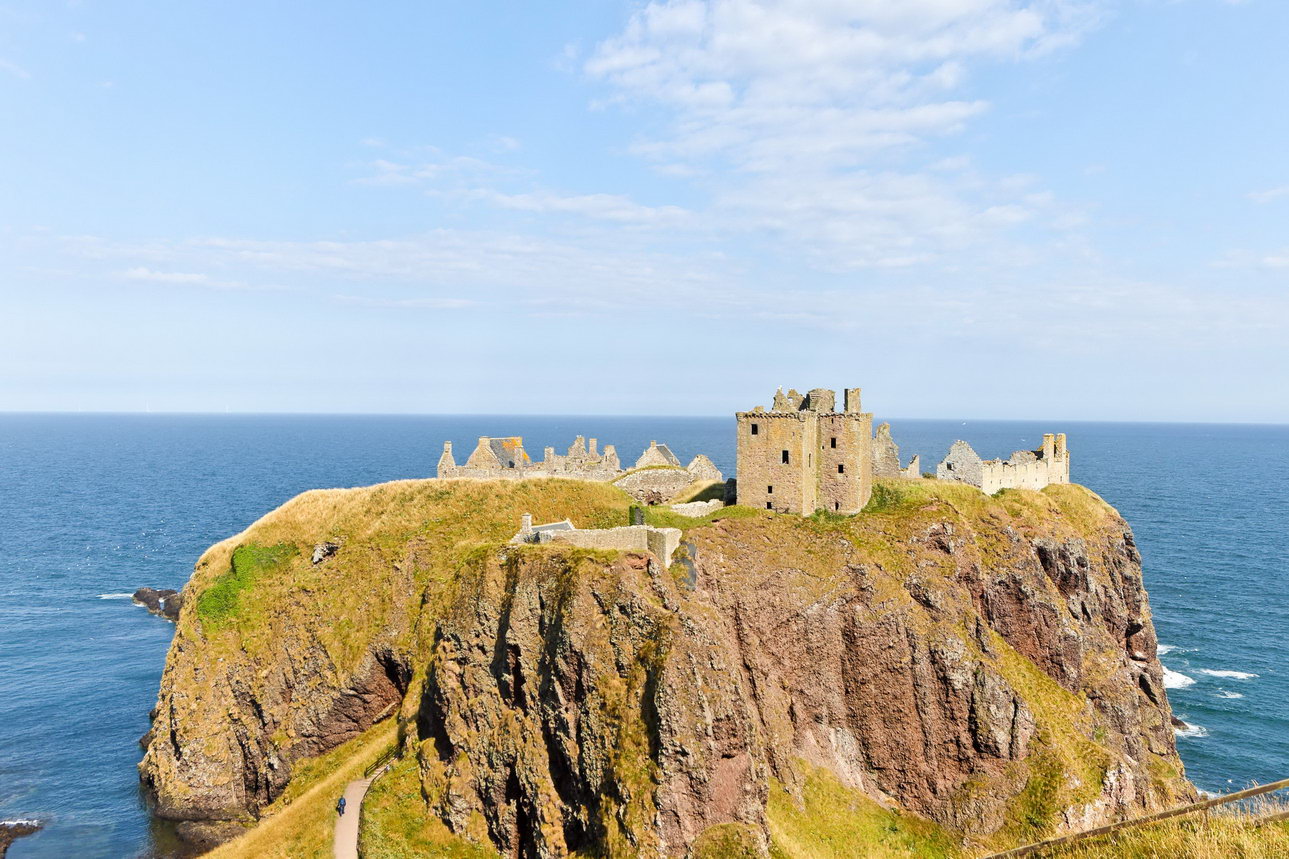Noch ein halt: Dunottar Castle bzw. das, was davon noch übrig ist. Man könnte auch sagen ein schönes Haus mit Seeblick. Direkt auf einen der Küste vorgelagerten Fels gelegen